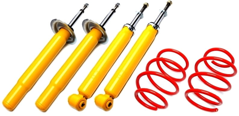 - W skład zestawu wchodzą: 2 sportowe sprężyny obniżające na oś przednią oraz komplet amortyzatorów na oś przednią.