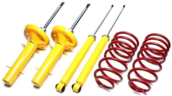 - W skład zestawu wchodzą: 2 sportowe przednie sprężyny obniżające oraz 4 amortyzatory o skróconym skoku, 2 na oś przednia i 2 na oś tylną