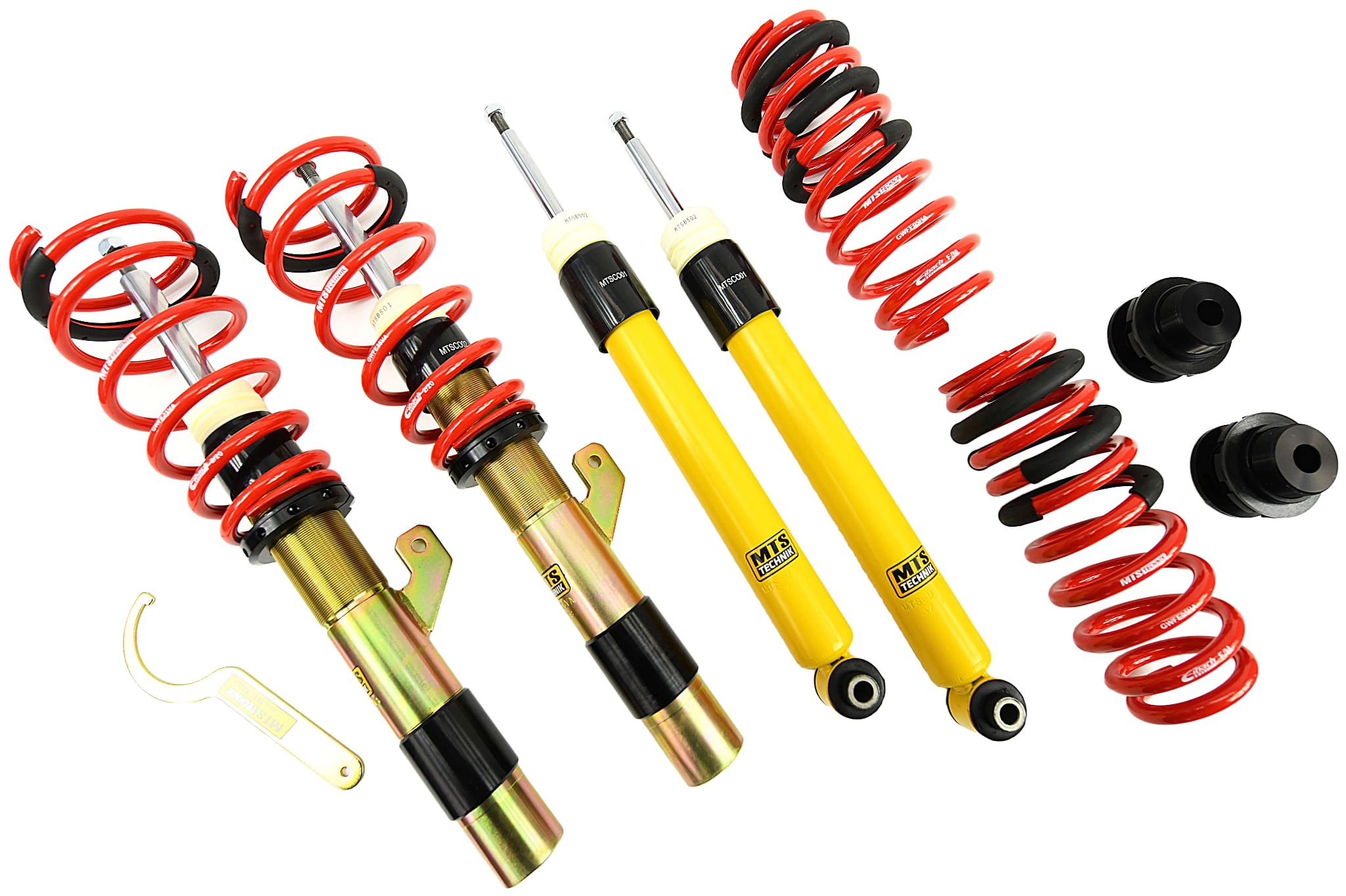- W skład zestawu wchodzi: kompletne przednie oraz tylne zawieszenie gwintowane wraz z kluczem do regulacji wysokości.