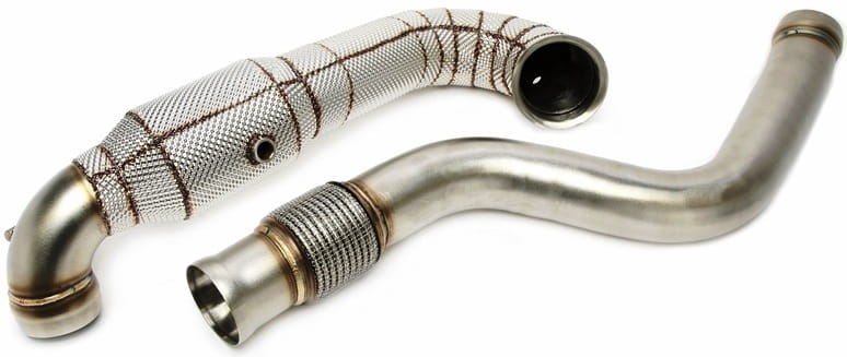 - W skład zestawu wchodzi: 2-częściowy downpipe z katalizatorem