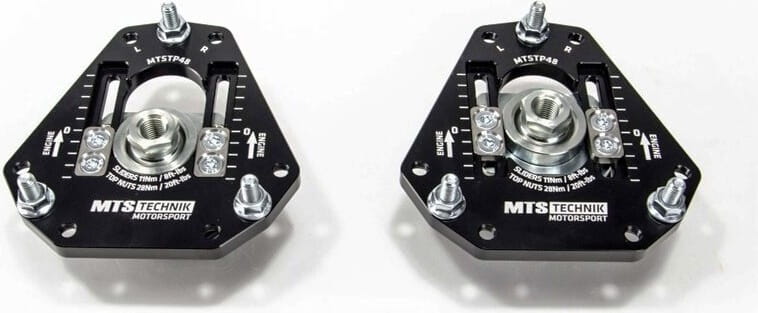 Regulowane camber / caster plates (przód) MTS Technik pozwala na regulację kąta nachylenia kół względem podłoża oraz kąta wyprzedzenia sworznia.