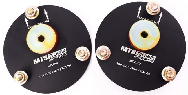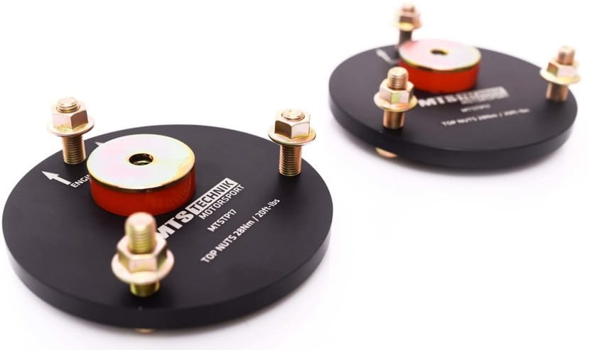 Poliuretanowe górne mocowania (przód) MTS Technik. Zastępują fabryczną gumę poliuretanem co gwarantuje większą sztywność i poprawia precyzję prowadzenia.