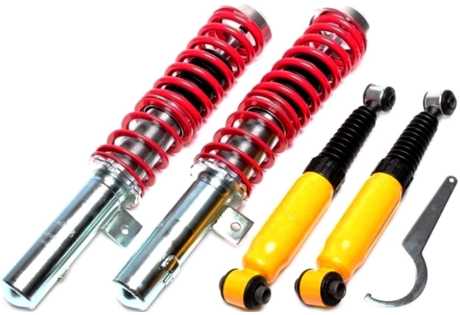 - W skład zestawu wchodzą: kompletne przednie i tylne zawieszenie gwintowane oraz klucz do regulacji wysokości
