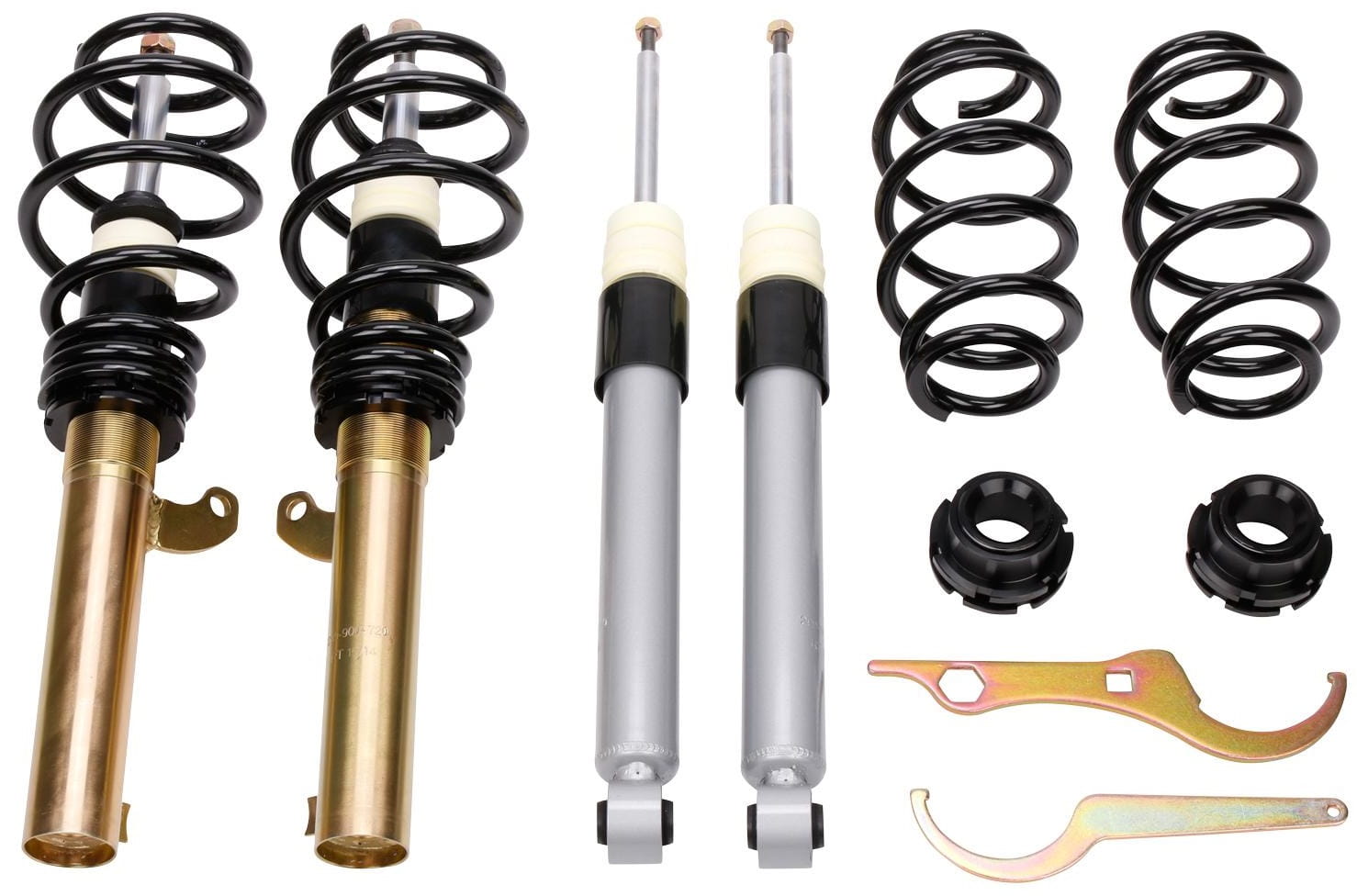 - W skład zestawu wchodzą: kompletne przednie oraz tylne zawieszenie gwintowane oraz klucz do regulacji wysokości